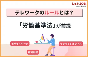 在宅勤務、モバイルワーク、サテライトオフィス勤務のいずれのテレワーク時においても労働基準法などが適用されます。
