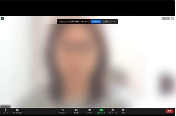 求職者がzoomにアクセスすると、私達企業側の画面に「●●(zoomで登録されているアカウント氏名)が待機室に入室しました」と表示されます。