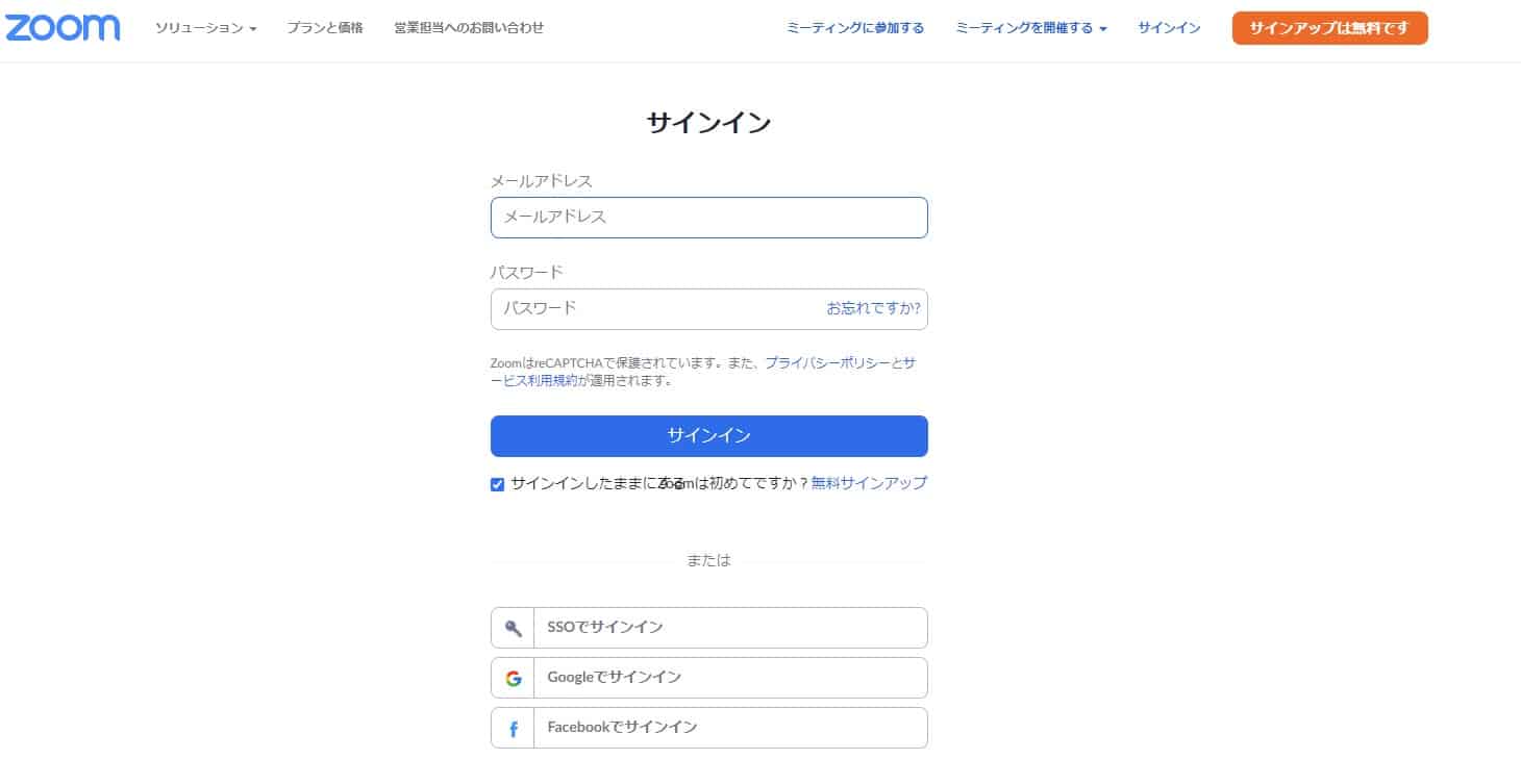 WEB面接の日時が決まったら、登録したメールアドレスとパスワードでzoomにログインします。