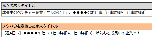 求人を書く側から、求人を読む側つまり求職者の目線に立って改めて見直すと、第三者が初めて見たときのわかりづらさやその時の心象が応募動機を左右することを、ご理解いただけたかと思います。