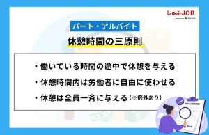 休憩時間に関して押さえておきたい大きな原則は以下の3つです。