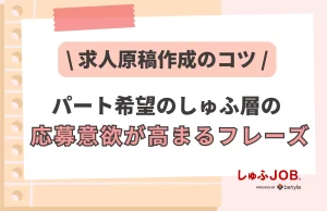 求人サイト「しゅふJOB」に実際に掲載されていた求人から応募意欲が高まるフレーズを厳選してご紹介します。