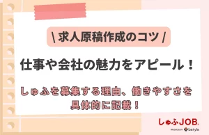 などお仕事の魅力や、しゅふを歓迎している・採用する意欲があることを具体的に記載していきましょう。