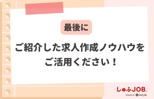 数多ある求人のなかで一人でも多くの人に見てもらうために、ここでご紹介したノウハウを基に求人を作ってみてください。