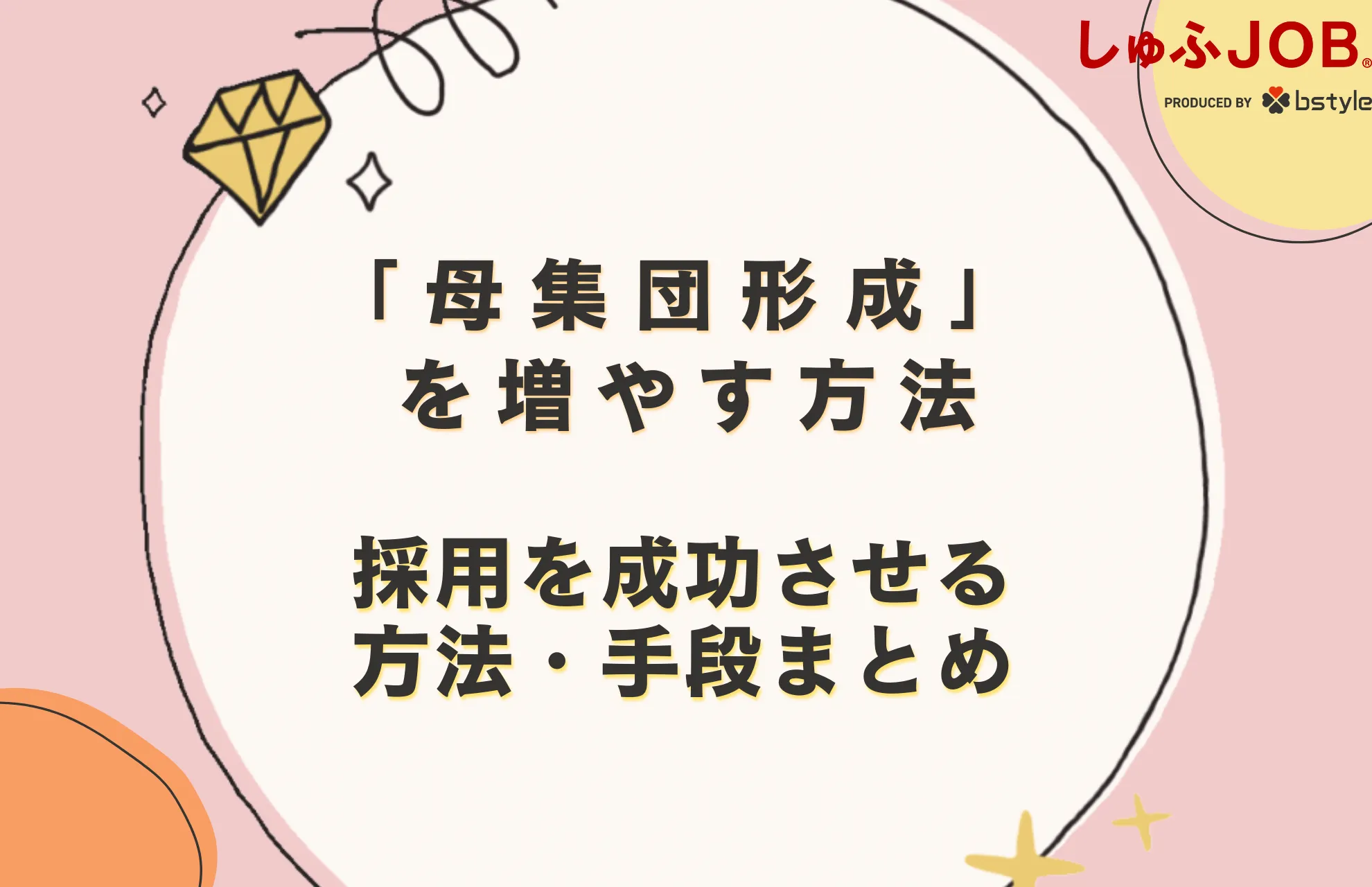 「母集団形成」を増やすために、主婦・主夫採用を始めませんか?事務職・接客・販売など様々な業種の経験者が「しゅふJOB」を利用しています。パート・アルバイト採用なら、主婦・主夫採用に特化した求人サイト「しゅふJOB」がおすすめです!