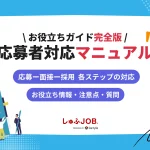 ▼応募者対応の基本マニュアルに関しては「【採用担当者向け】応募を逃さない!応募者対応の3つのポイント」の記事でも詳しく記載していますので、併せてご覧ください。