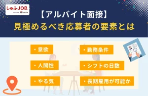 ほかにも「明るく元気」「接客が好き」「長期で働く意思がある」など、採用したい人物の特徴を具体的に言語化すれば、質問の方向性や評価のブレを防げます。