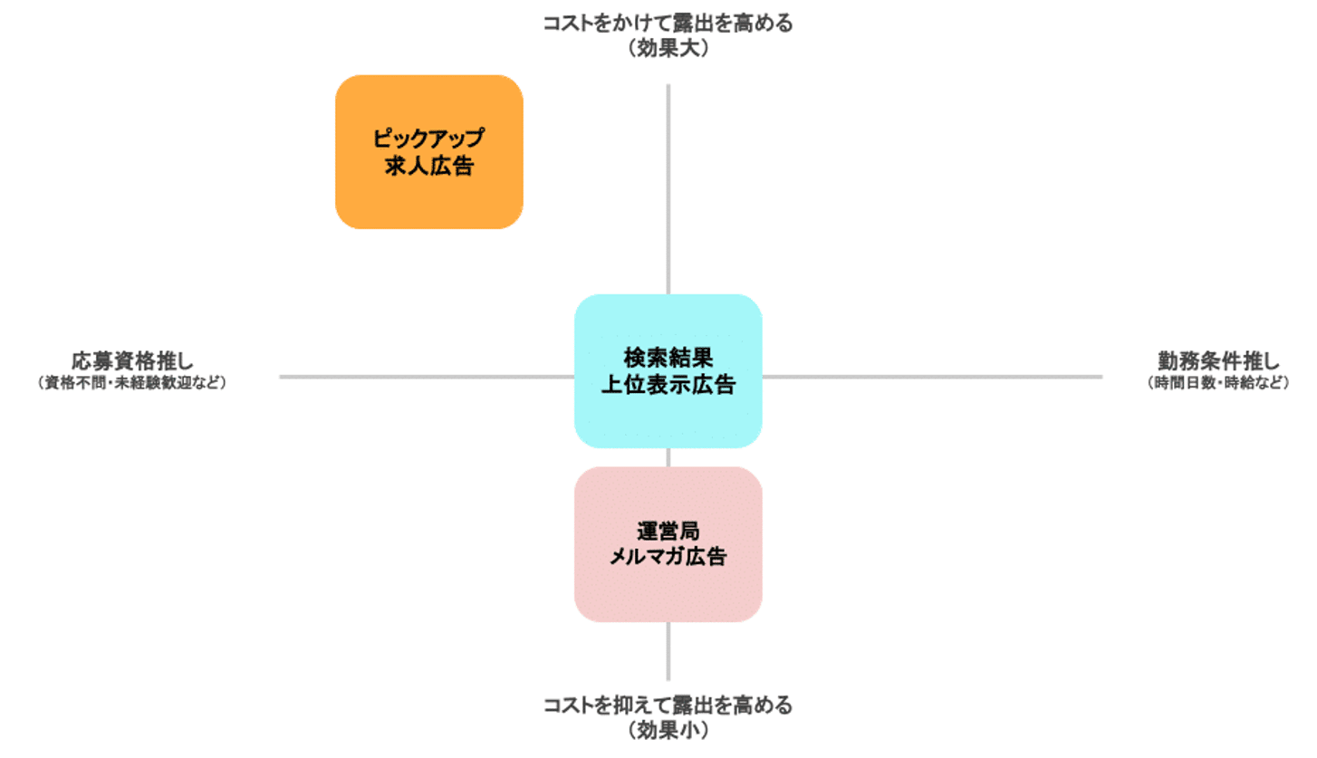 求人のアピールポイントと予算感に応じて活用イメージを整理しました。