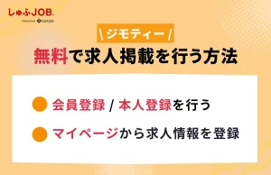ジモティーで求人を無料掲載する方法は主に以下の2つです。