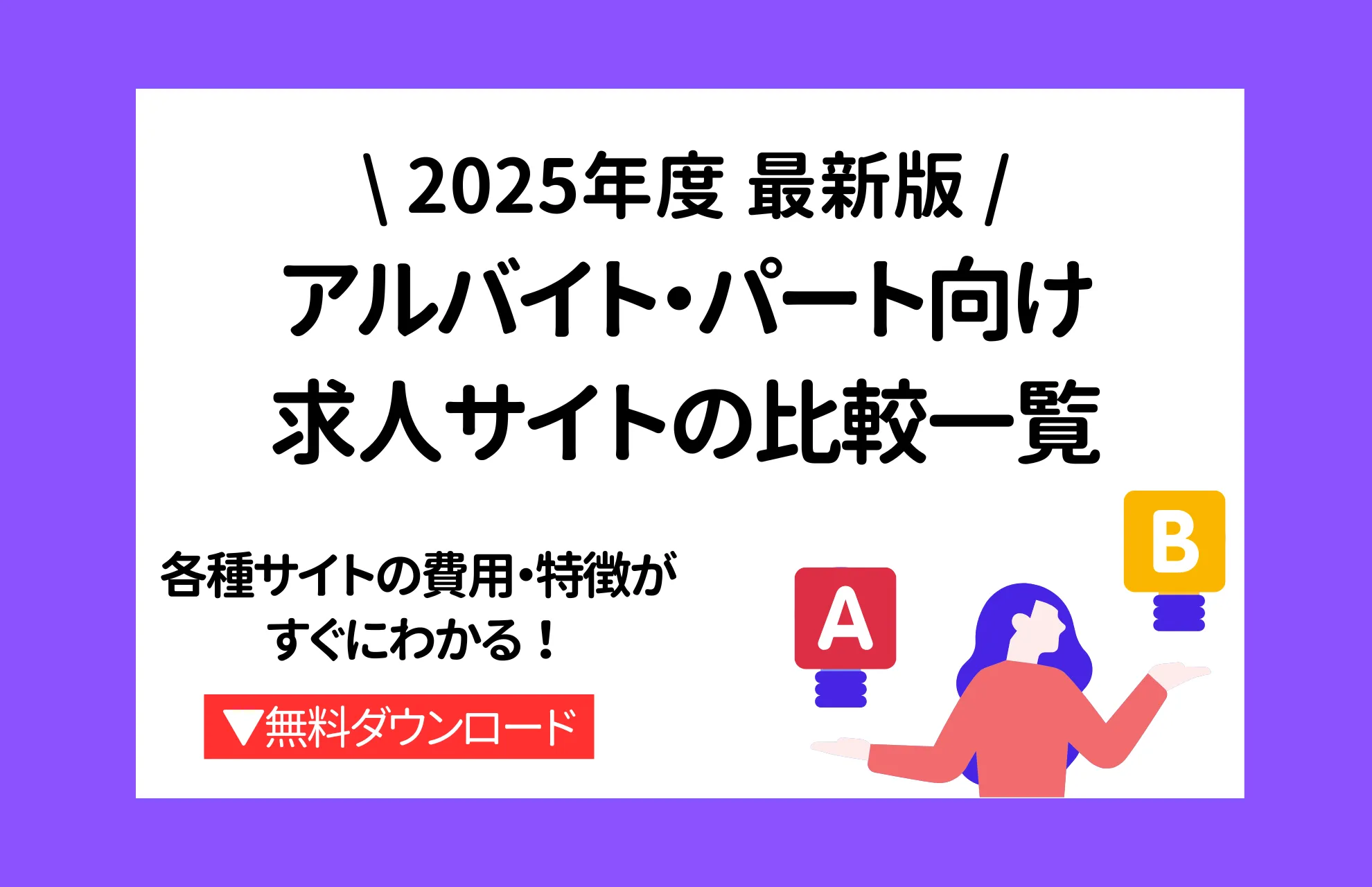 ▶「【2025年度】アルバイト・パート向け求人サイトの比較一覧」の無料ダウンロードはこちら