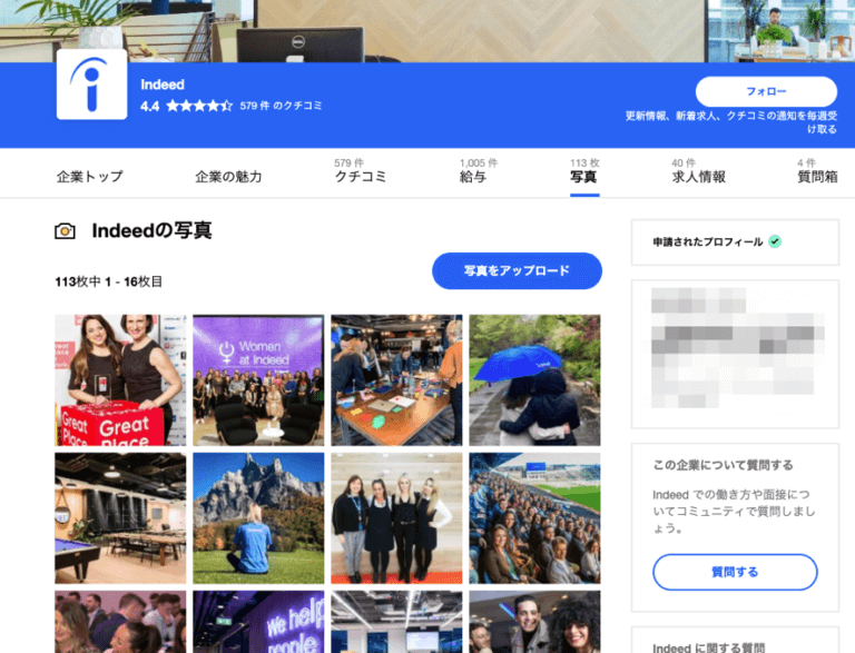 A:Indeedトップページの検索欄に自社名を入力して検索することで確認可能です。