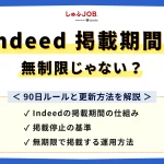▼Indeedの掲載期間を詳しく知りたい方は、以下の記事をご覧ください。プラン別の掲載期間や停止する詳細な理由など、掲載期間に関連する情報をまとめて理解できます。
