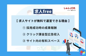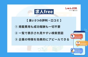 求人freeは、求人広告掲載料や採用時の成功報酬などが一切かからず、完全無料で求人情報の掲載ができるサイトです。