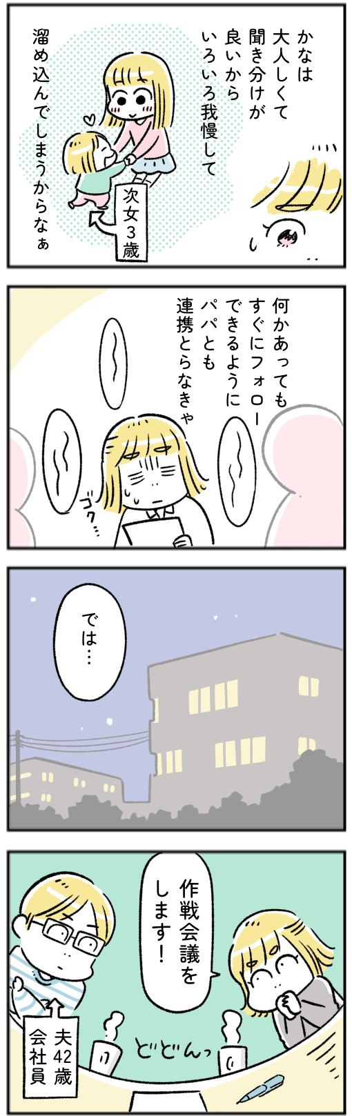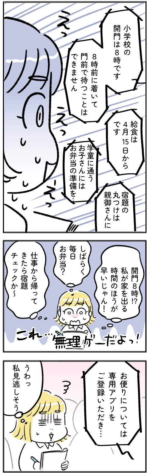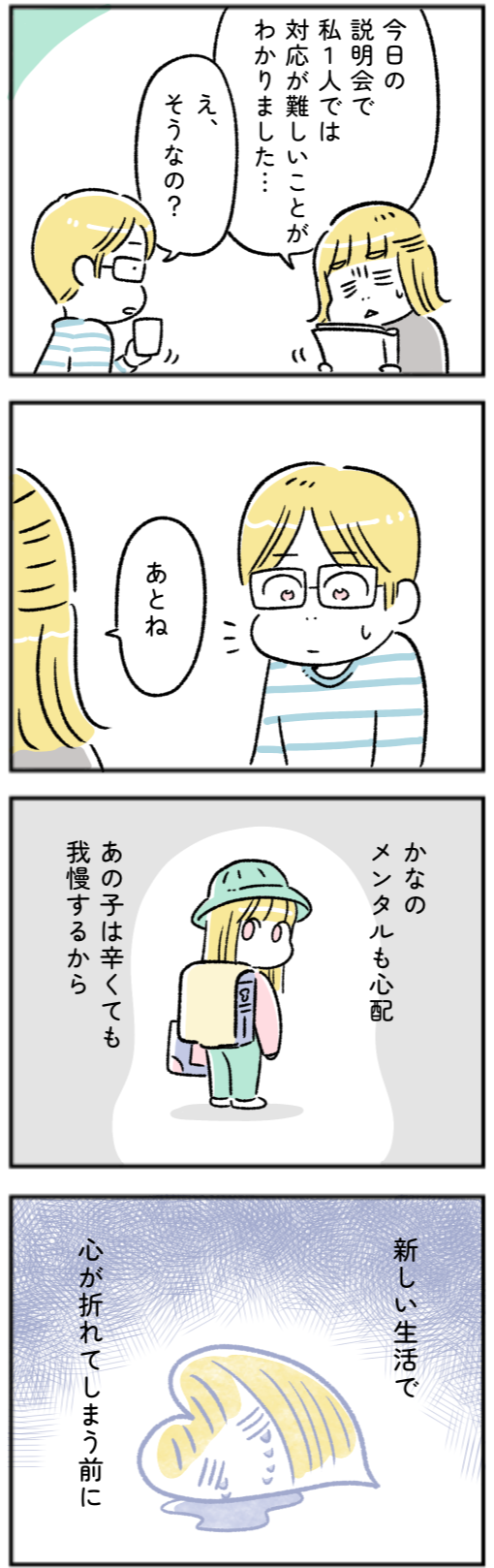 フルタイムで働く2児の母・あやみ。家庭も仕事も分刻みの4月のある夜、娘のひと言が、あやみの心をぎゅっと締め付けるーーー<娘の気持ちにこたえたい。でも…どうすれば?>“母”として、“社会人”として、どうにもならない板挟みの現実と葛藤の先に、あやみがたどり着いたひとつの選択とは。