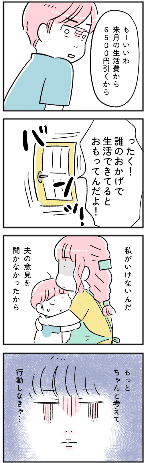 専業主婦のみわこは、夫・たつやと息子との3人暮らし。大手企業に勤める超エリート“自慢の夫”との生活は、気づけば、息苦しさで満ちていた。「誰のおかげで暮らせてるんだ」「だからお前はダメなんだ」言葉の刃に傷つきながらも「生活費をもらっている以上、逆らえない」と自分を抑え込む毎日。積み重なった痛みがついに限界を超えた日、みわこは静かに決意を固めるーー。