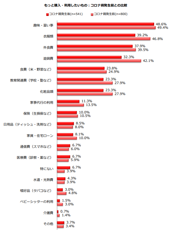 抑圧された日々の生活の中で、金銭や時間の消費機会が少なくなっていることが影響しているのかもしれません。