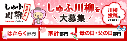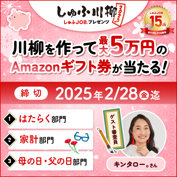 主婦・主夫の皆さんが日々の生活で感じる課題や疑問、喜びを川柳という形で発信する場として誕生した「しゅふJOBプレゼンツ しゅふ川柳」。