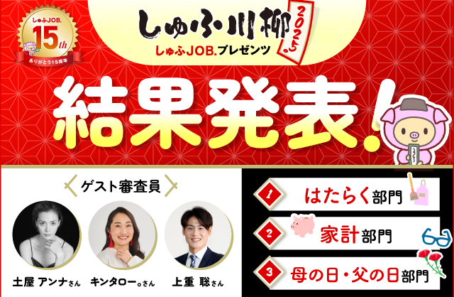 主婦・主夫のみなさまの日常・喜怒哀楽・リアルな声を綴った「しゅふJOBプレゼンツ しゅふ川柳2025」。