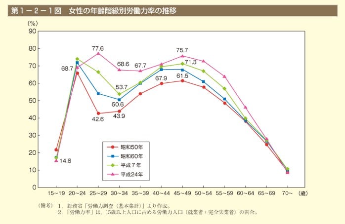 出典:男女共同参画局 女性の年齢階級別労働力率の推移