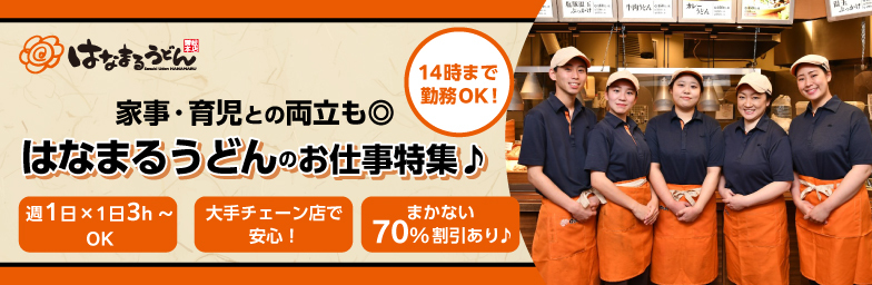 14時まで勤務OK◎週1日〜×1日3h〜スキマで働ける「はなまるうどん」のお仕事特集♪